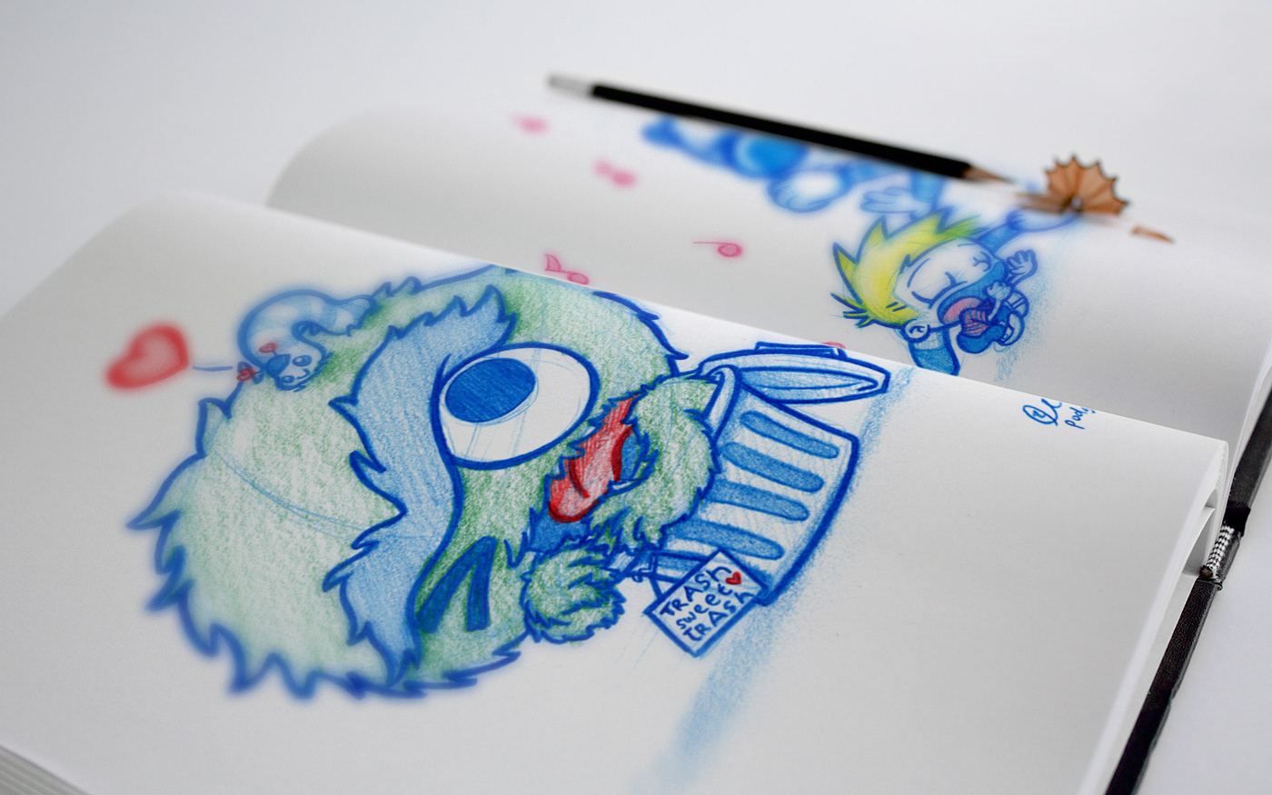 Blue & Red Col-erase pencils on 5inch x 7inch 180gsm Clairefontaine grained paper